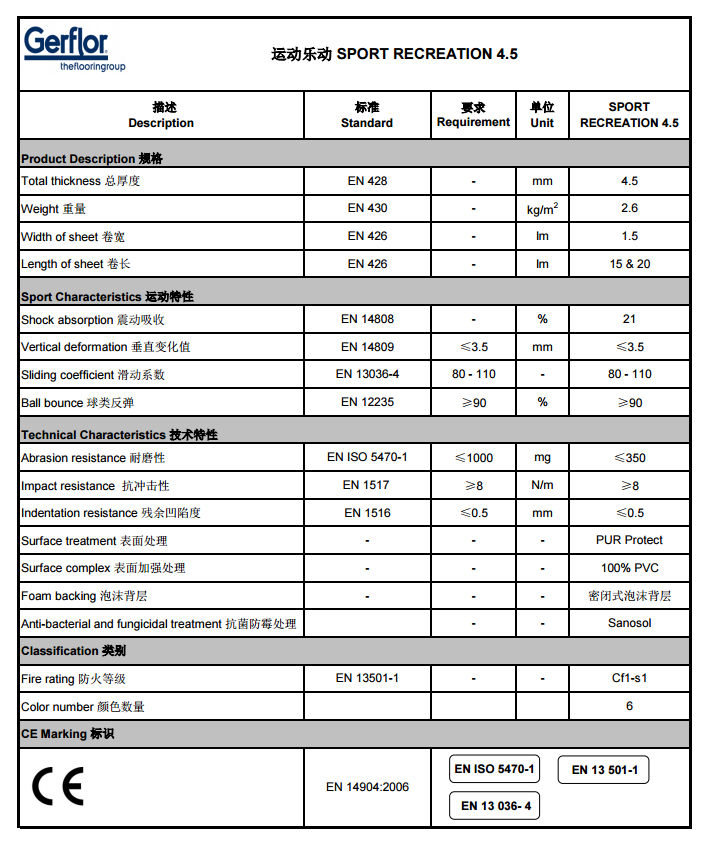 活動區(qū)、學(xué)校綜合體育館等.運動樂動 4.5 產(chǎn)品經(jīng)過聚氨酯紫外線光固化(PUR Protect)處理,具有優(yōu)異的耐用性能。